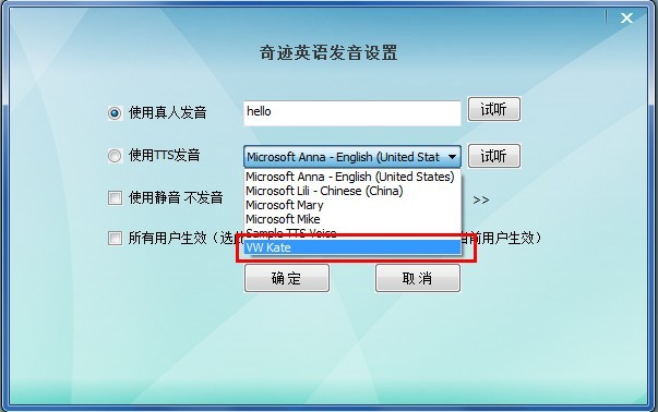 点击“系统设置-->发音设置”,系统支持真人发音和TTS发音,如果你不想发音,可选择静音模式。